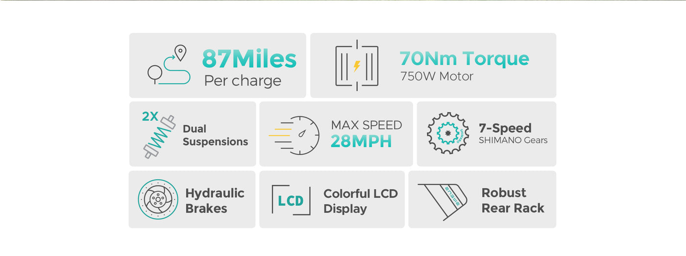 1000W(Peak) 87 miles Dual Suspension All-Terrain E-bike