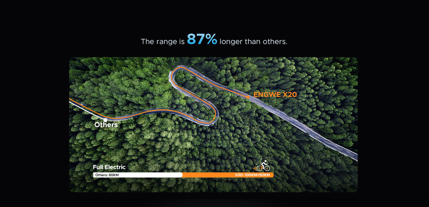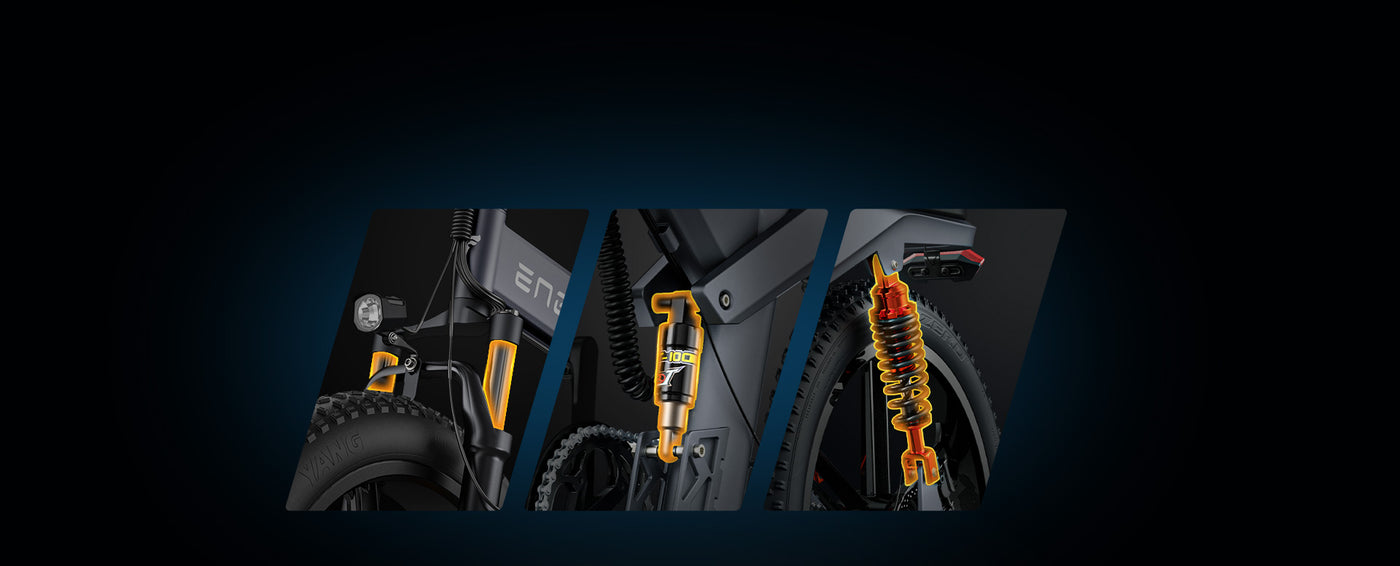 The ENGWE X20 offers 3x more powerful shock absorbance than an average e-bike. This is made possible with